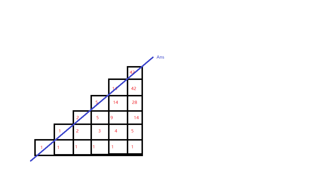 好,刚才这个定义显然很符合卡特兰数的定义,手玩的图上的数据也很支持这个观点。
