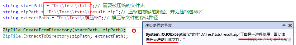 string startPath = "D:\\Test\\txts";// 需要被压缩的文件夹