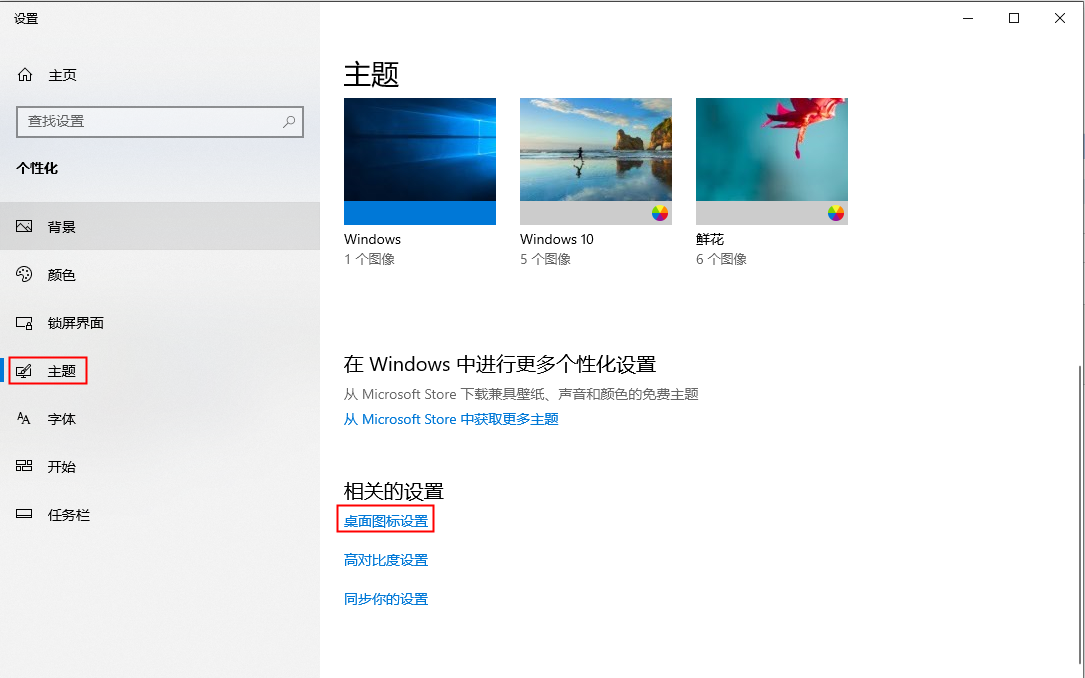 (1)桌面右键 => 个性化 => 主题 => 桌面图标设置