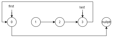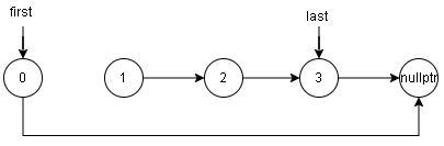 - 将指针 \(last -> next\) 赋予指针 \(first -> next\)
