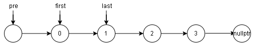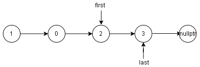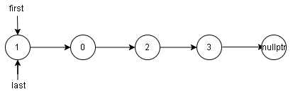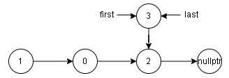 - 将指针 \(first\) 赋予指针 \(last -> next\)