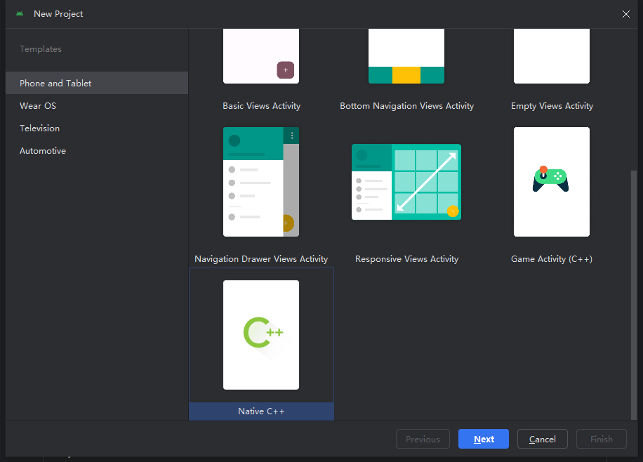 首先新建一个项目,选择 Native C++ 选项,然后点击“next”;