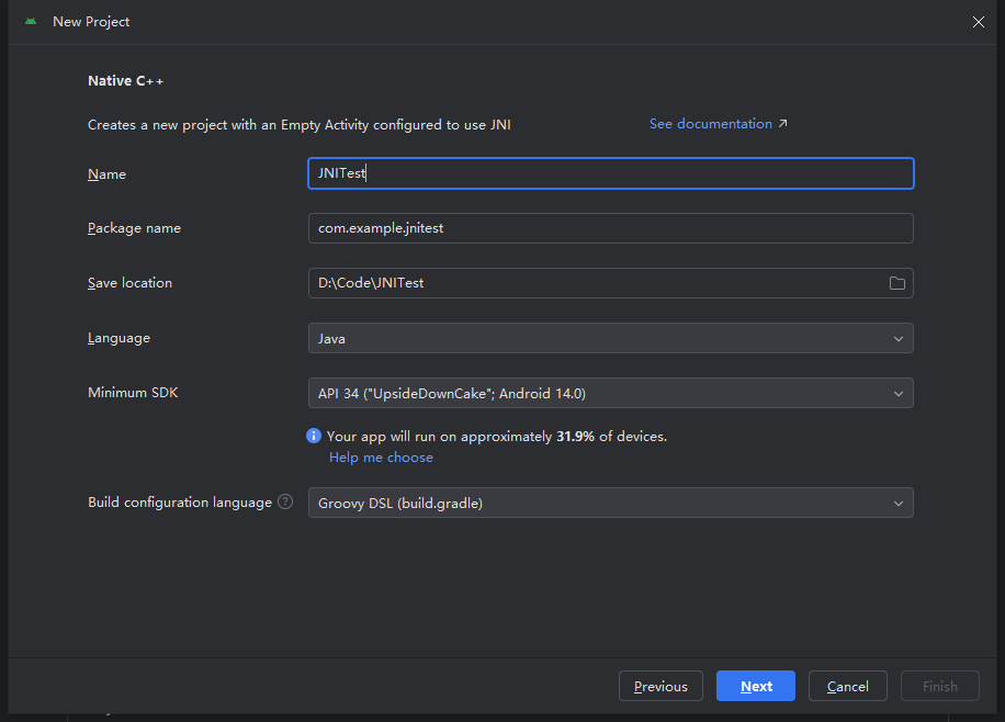 若是一个项目原本没有 cpp 代码,但是想集成进去,需要首先在 src/main 目录下创建一个名为 cpp 的文件夹,然后在 /cpp 下创建一个 CMakeLists.txt 和 cpp文件,同时,打开 build.gradle 配置如下信息:
