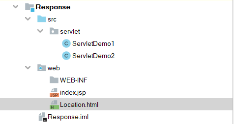 所以它的访问路径为:http://localhost:8080/Response_war_exploded/ServletDemo1。