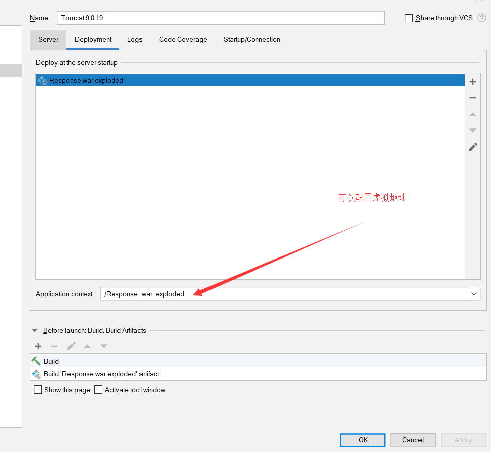 我配置了一个虚拟路径:" /Response_war_exploded "。