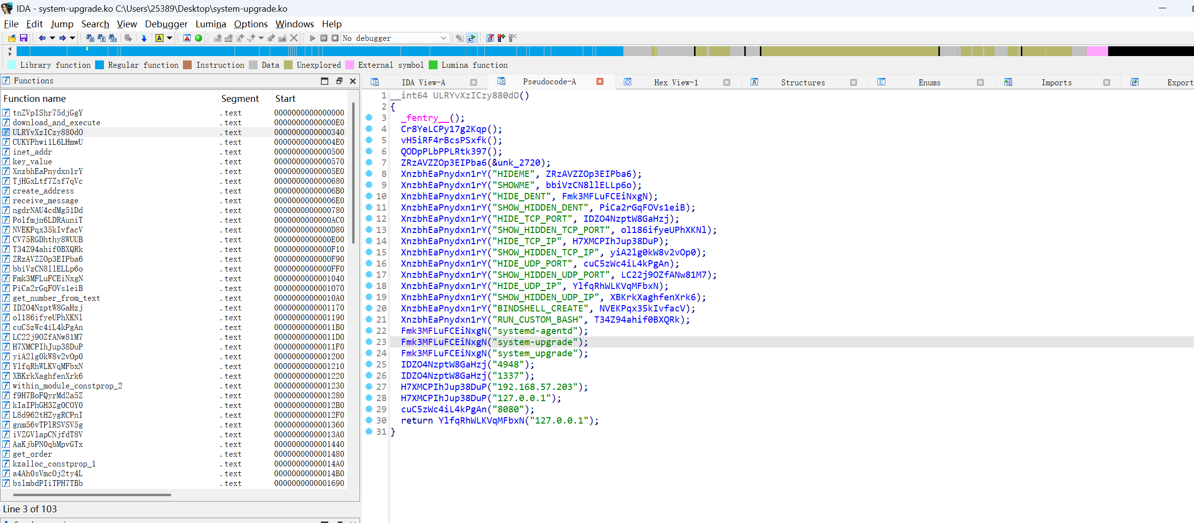 用IDA逆向分析,查看可以的字符串,猜测 unk_4BEFFD为通信密钥