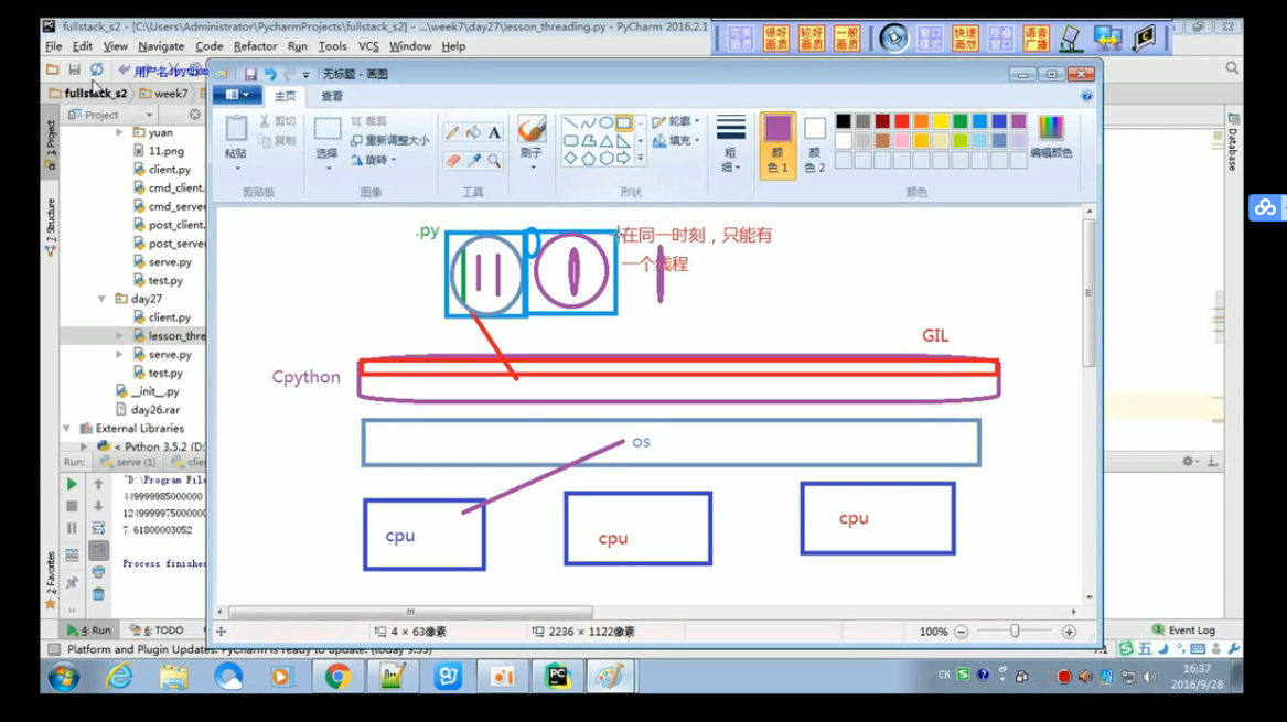 Python的GIL:GIL(全局解释器锁)只出现在Python的Cpython解释器中,其他解释器没有这种现象。出现原因是Python创始人为了管理线程对公共资源(变量等)的调用。因而限制了:单位时间内只允许一个线程在Cpython解释器上执行。从而导致Python语言没有真正意义上的多线程。
