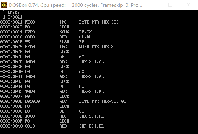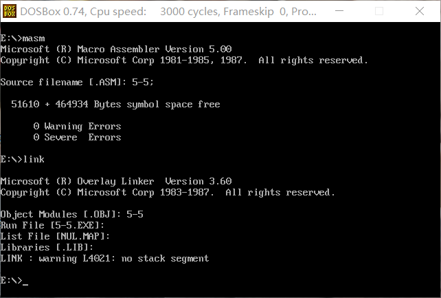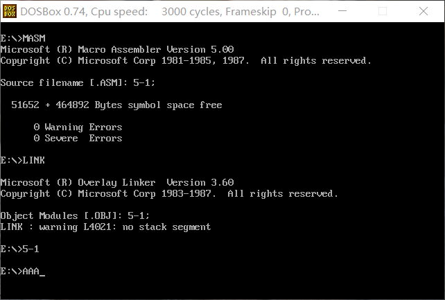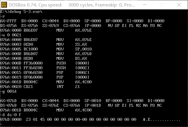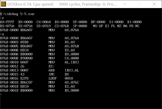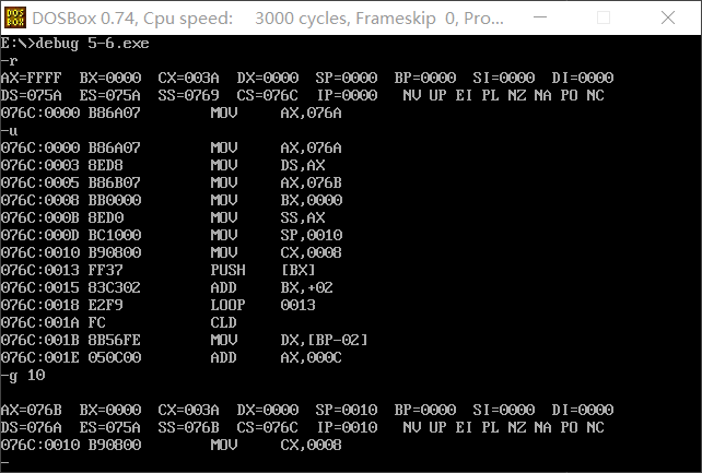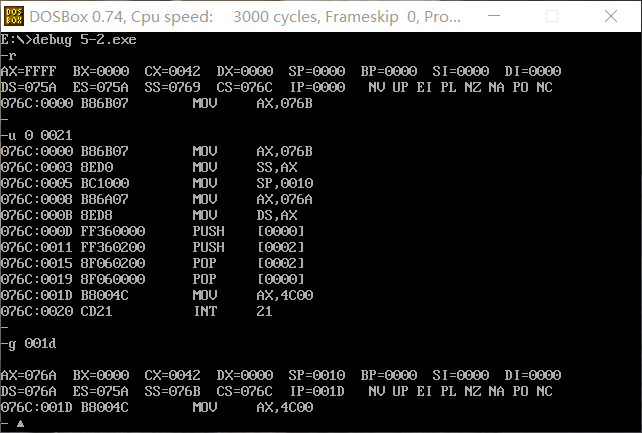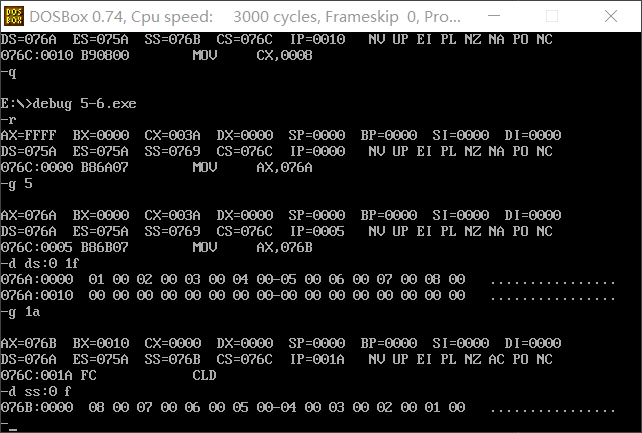 2. CPU执行程序,程序返回前,cs=076A ,ss=076E ,ds=076D