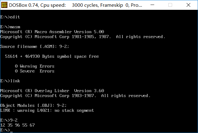 任务二:补全程序t2.asm,完成在屏幕上输出data段定义的5个十进制两位数,数据和数据 之间以空格间隔。