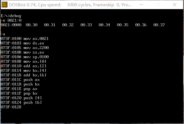 首先用e 命令修改数据,并用a命令写入指令。