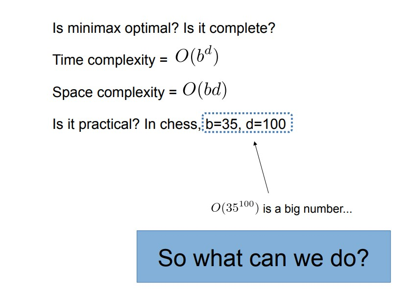 对抗搜索的核心思想就是dfs遍历一遍博弈树。不难想到,如果博弈树非常庞大,在不加优化的情况下,对抗搜索的时间效率是十分低下的。因此,我们就需要对对抗搜索进行一定的优化。 -