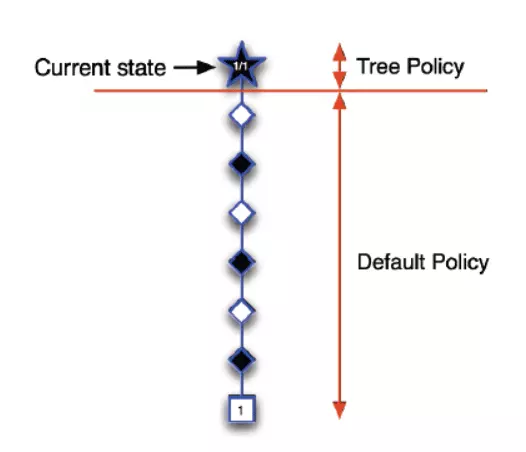 - 展开:根据对手的落子,展开至我们胜率最大的落子模式(我们称之为一阶蒙地卡罗树)。所以在AlphaGo的搜索树中并不会真的展开所有组合。