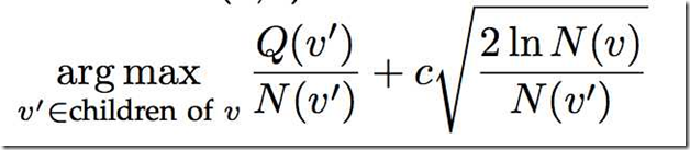 下面先介绍UCB算法,这是MCTS的经典实现UCT(Upper Confidence bounds for Trees)里面用到的算法。公式如下: