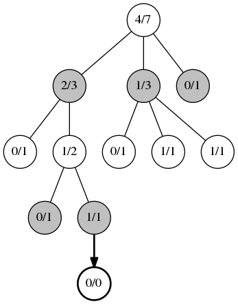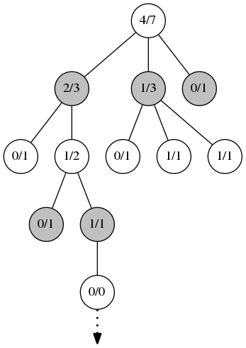 这样一想,其实3种必败的决策还是有一定的优劣性的。比如,最右边那个子节点,它的所有子树跟子树的子树收益都是-1,也就是说,对方就算乱下,我们都必输;而中间跟左边那个子节点,如果对手下错了,还有一一定几率能够通往+1的叶子节点的。因此,左边两个决策要比最右边的决策要相对好那么一点儿。因此,在发现我们已经必败的时候,依然能够在决策中做一个取舍,选择败得不明显的那种决策。