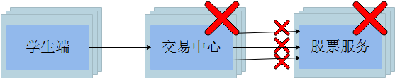 交易中心不可用后,将会将错误蔓延到学生端。最终导致服务的全面崩溃。