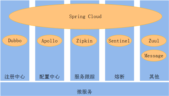 Spring Cloud是一个解决微服务架构实施的综合性解决框架,它整合了诸多被广泛实践和证明过的框架作为实施的基础部件,又在该体系基础上创建了一些非常优秀的边缘组件。所有微服务实施中需要的相应解决方案,Spring Cloud都帮我们实现了。像Dubbo或者Apollo都只是实现了微服务框架中的某个组件。