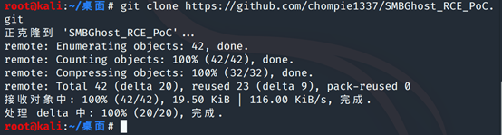4、下载poc,地址:https://github.com/chompie1337/SMBGhost_RCE_PoC.git