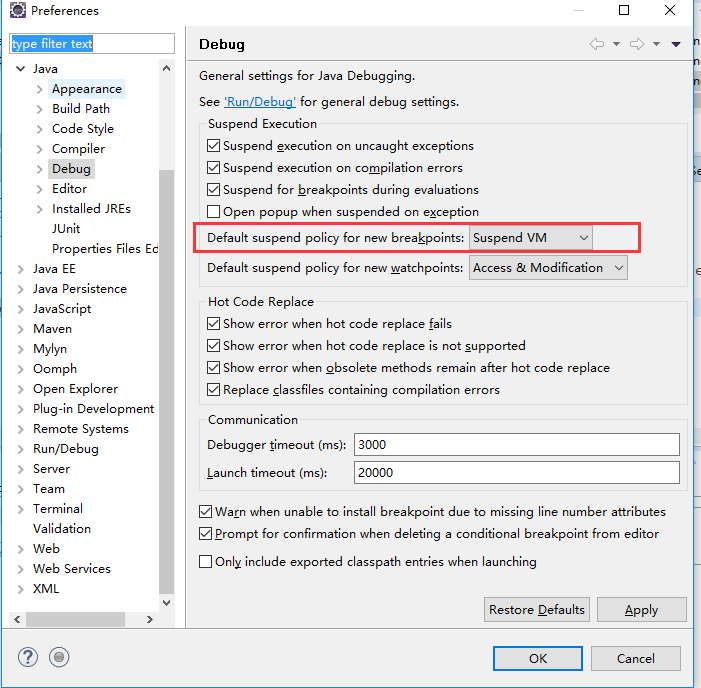 日常工作碰到Eclipse DEBUG调试多线程无法进入线程内部的问题,解决办法如下: