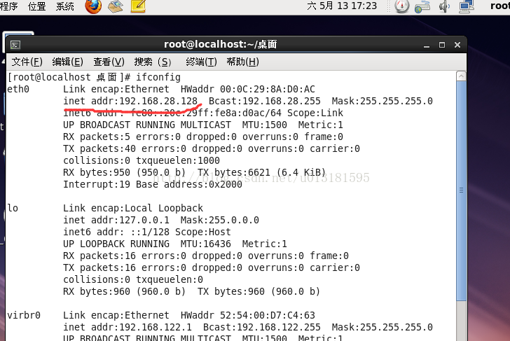 再输入 ifconfig 查看网络设备,可以看到这个时候显示出来了eth0网卡,可是只显示了ipv6地址,未显示ipv4地址