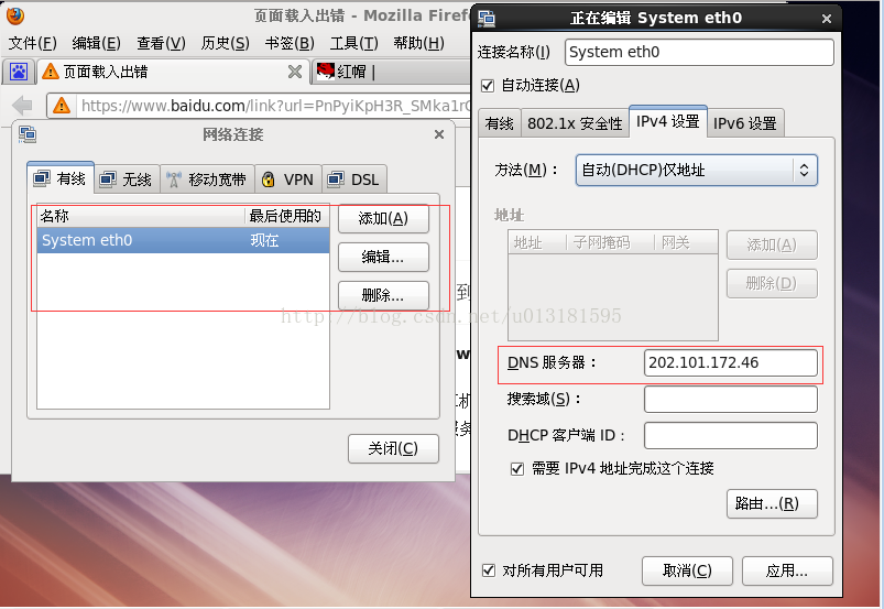 完成后,主机ping一下这个IP地址肯定是可以ping通的。然后开心的打开火狐浏览器上网,发现竟然不能上网。