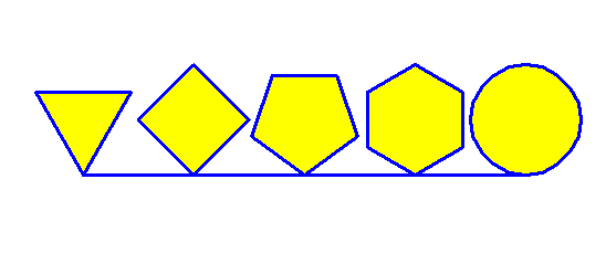 import turtle number = int(input()) #把用户输入转成整数 turtle.screensize(600,500,'white') turtle.pensize(3) #设置画笔宽度为3 turtle.pencolor('blue') #设置画笔颜色为黑色 turtle.fillcolor('yellow') #设置填充颜色为黄色 turtle.begin_fill() #开始填充 #turtle.forward(-50) for i in range(3,number): turtle.circle(50, steps=i) turtle.forward(100) turtle.circle(50, steps=number) if number == 1: turtle.circle(50) else: turtle.forward(100) turtle.circle(50) turtle.end_fill() turtle.hideturtle() #隐藏海龟 turtle.done()
