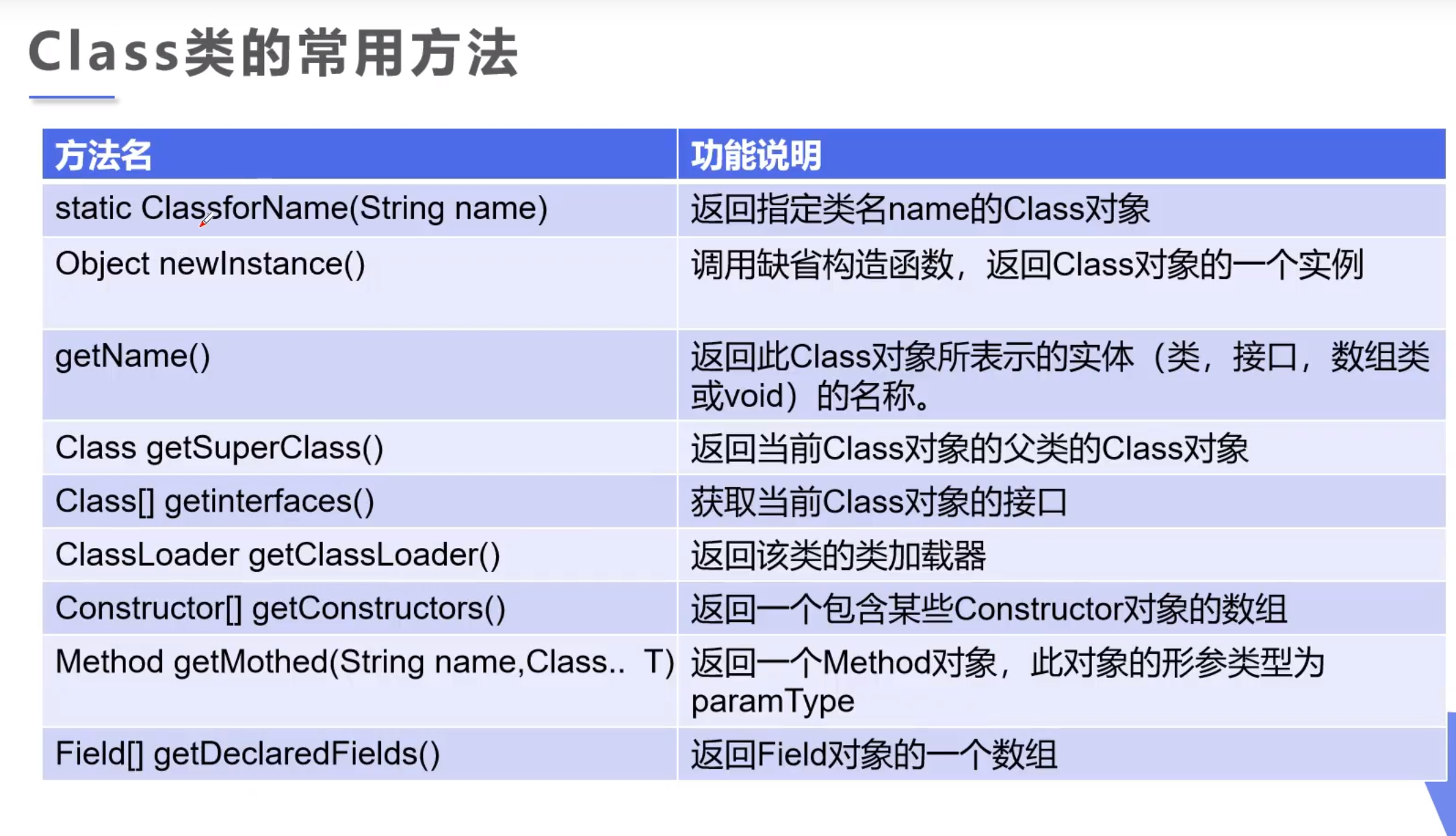 - 每个类有且仅有一个Class对象,由系统生成。我们不能通过new去创建,只能通过方法获取。