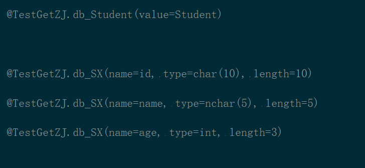 @db_SX(name = "id",type = "char(10)",length = 10)