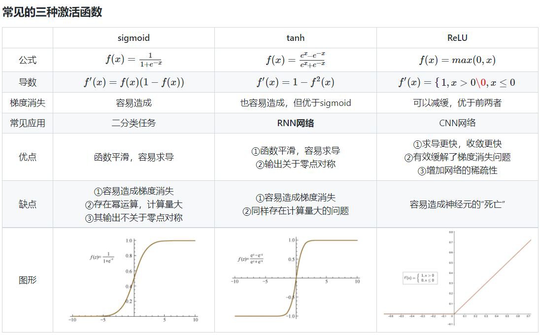 常用的激活函数:Sigmoid函数、tanh函数、Relu函数、Leaky ReLU函数、ELU (Exponential Linear Units) 函数、SoftMax函数、MaxOut函数。