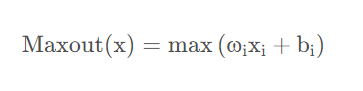 Maxout函数来源于ICML上的一篇文献《Maxout Networks》,它可以理解为是神经网络中的一层网络,类似于池化层、卷积层一样。我们也可以把Maxout函数看成是网络的激活函数层,我们假设网络某一层的输入特征向量为:x=(x1,x2,...,xd),也就是我们输入是d个神经元。Maxout函数的输出如下: