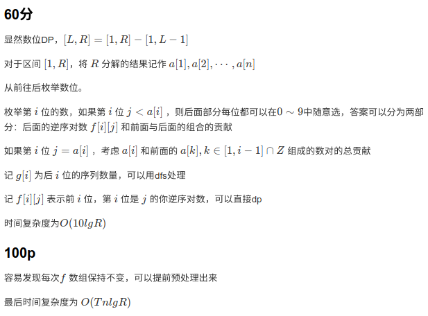 - 正解:神秘数位 DP ,不会。粘题解了,