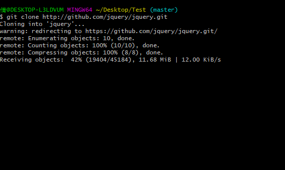 比如,克隆jQuery的版本库。 $ git clone https://github.com/jquery/jquery.git