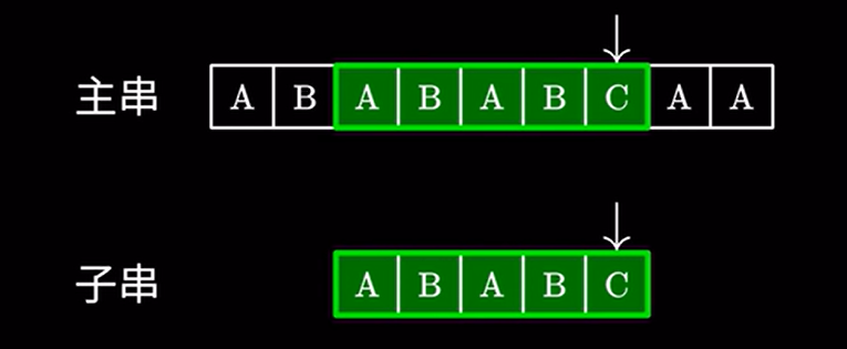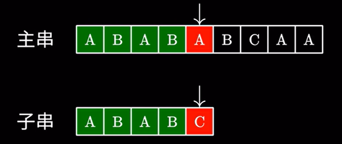 接着进行匹配,由于这里的 \(AB\) 和主串的 \(AB\) 相同,我们完全可以跳过他们,直接进行下一步的匹配: