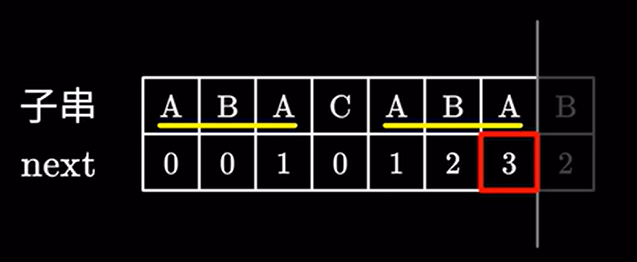 我们回去看最后一个匹配字符的next值: