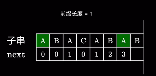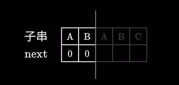 对于前两个字符同样不存在相同的前后缀,next 值为 \(0\)