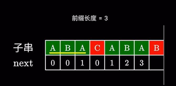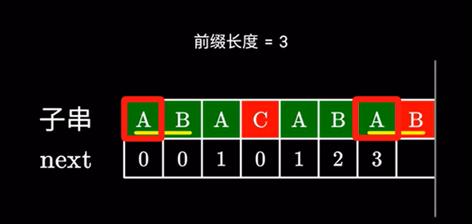 例如这里的 长度为 \(3\) 的相同前后缀 \(ABA\)