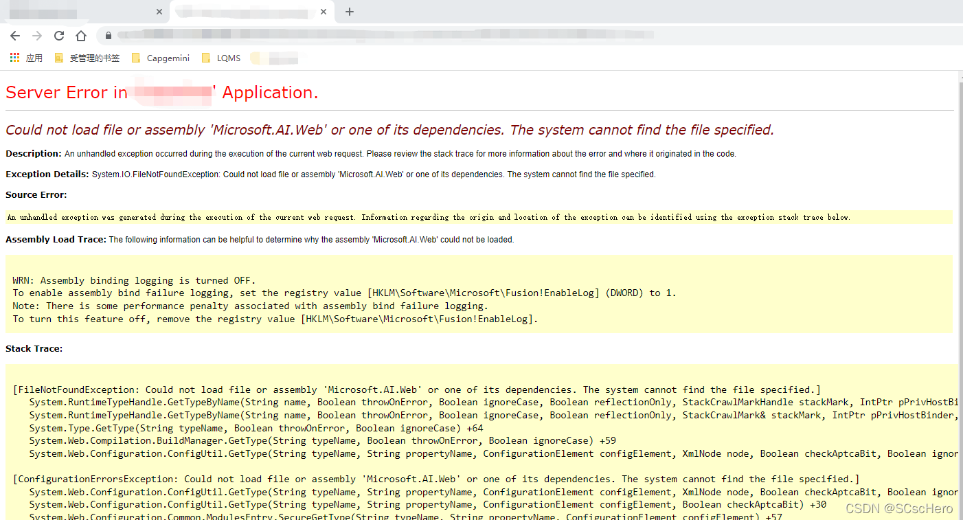 Assembly Load Trace: The fllowing information can be helpful to determine why the assembly 'MicrosoftAl.Web' could not be loaded.