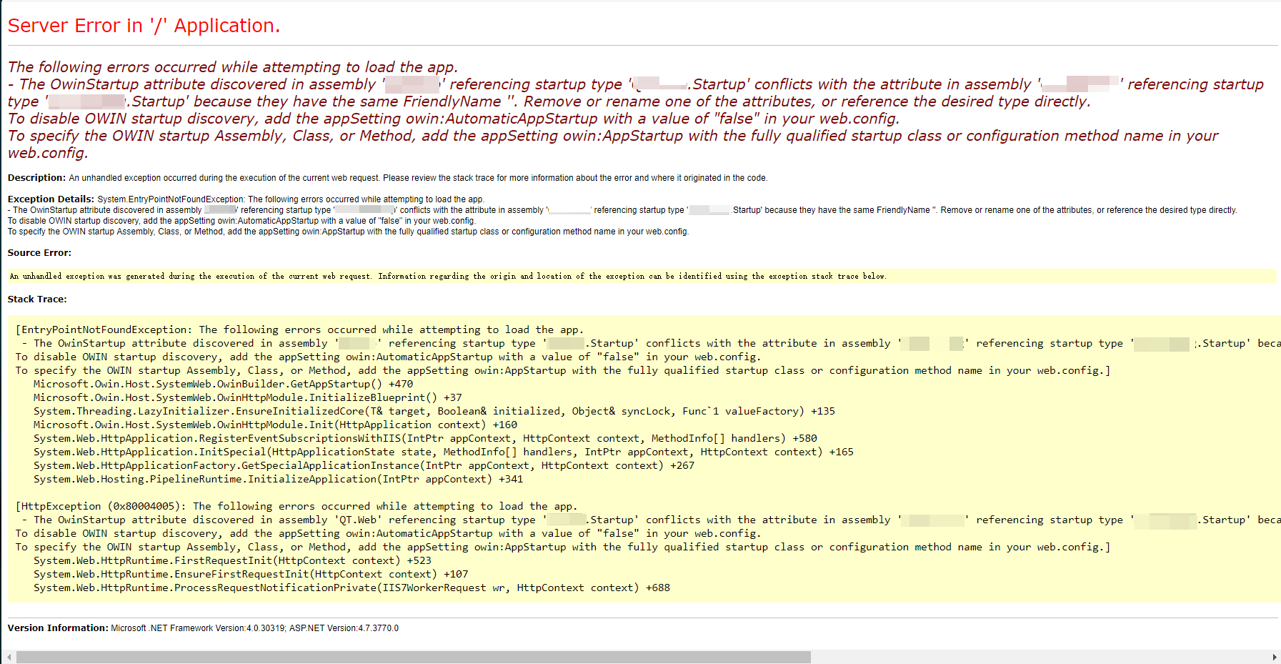 | 『.Net FW上线报错:The OwinStartup attribute discovered in assembly 'AppName'.』 | |||