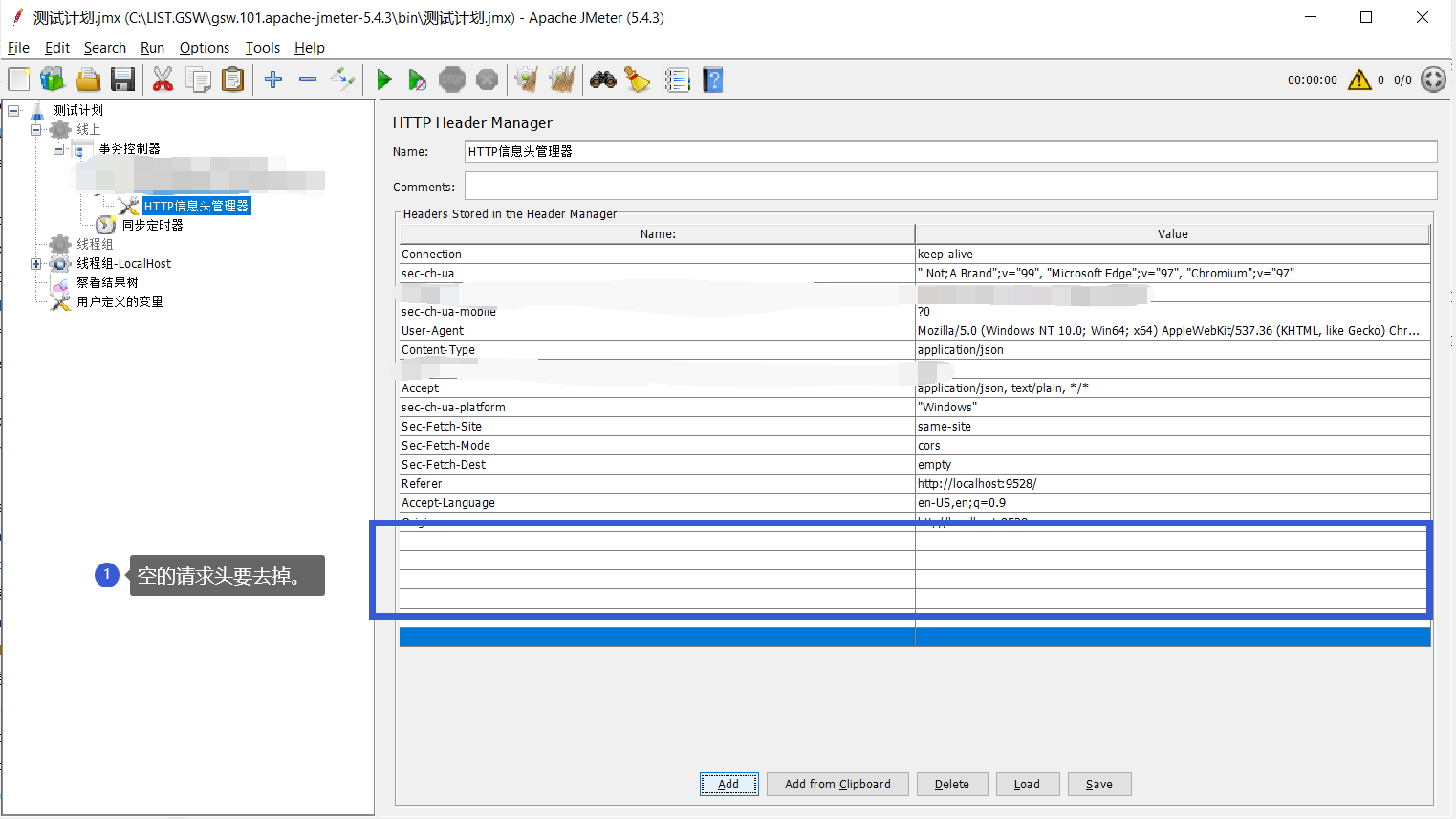 JMETER请求失败:空Header导致
