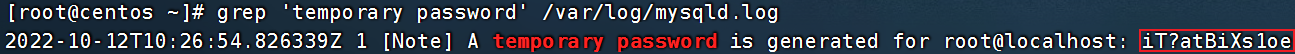 # 通过grep命令,在/var/log/mysqld.log文件中,过滤temporary password关键字,得到初始密码