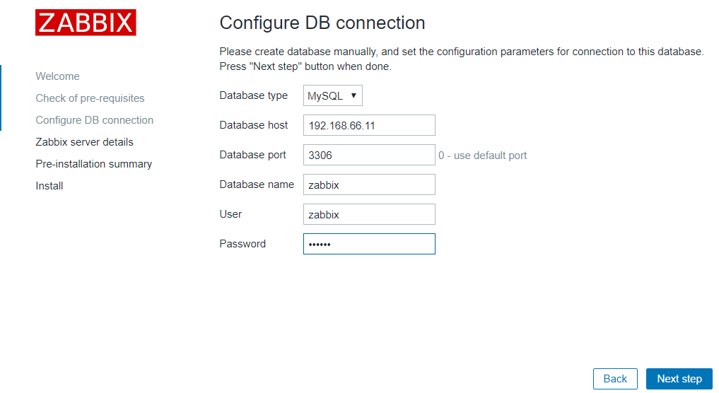# zcat /usr/share/doc/zabbix-server-mysql*/create.sql.gz | mysql -uzabbix -p zabbix