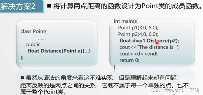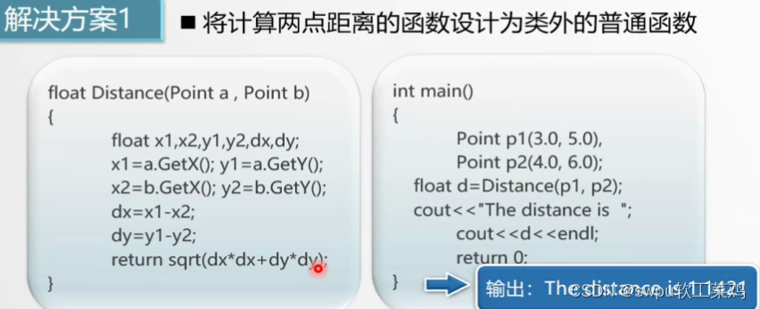 解决方案3:像第一种方案一个普通的成员函数实现两点距离&同时方便的访问到私有成员