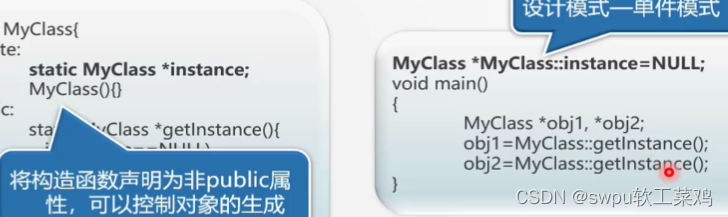 能将构造函数声明为非public属性 应用举例: 保证只有一个类的实例