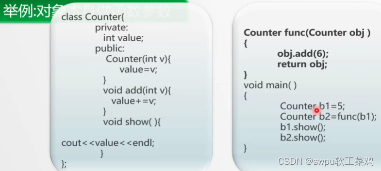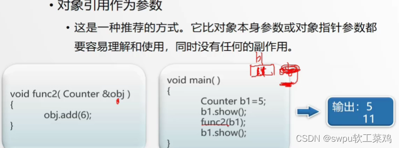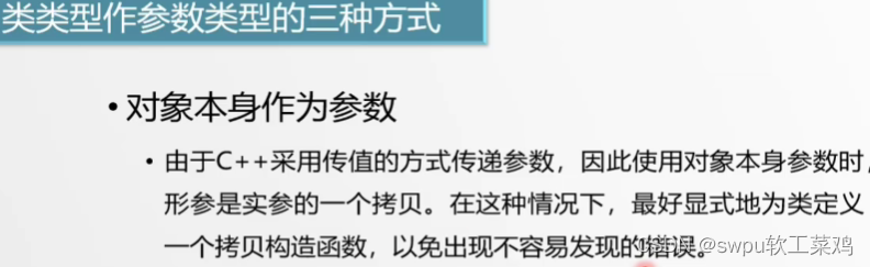 对象本身做参数 效率低 多次引用拷贝构造函数 对象引用 效率很高 直接用对象