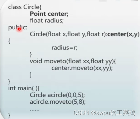 就要用初始化列表的方式初始化子类对象 : circle(floatx,float y,float z):center(x,y)就是