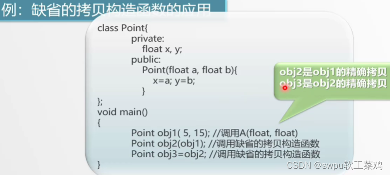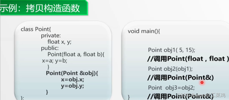 Point obj2(obj1) Point obj3=obj2 是一样的 调用拷贝构造函数