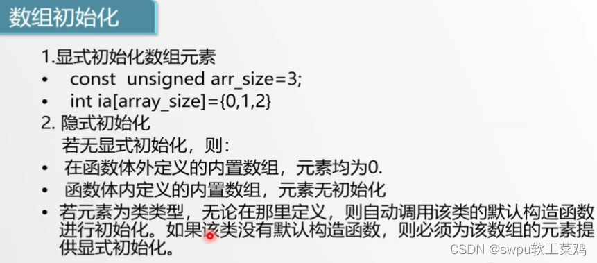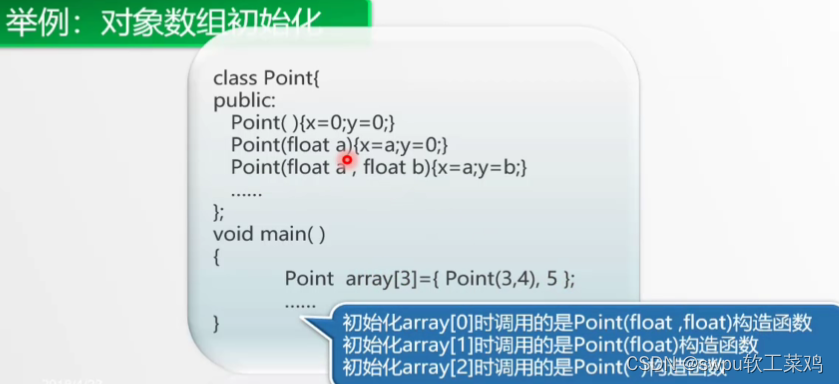 这三行初始化分别对应array【3】数组里面的三个数据(point(3,4));(5);()