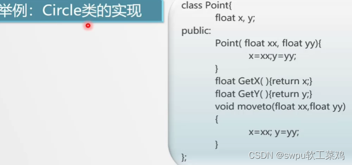 Point圆心 是circle园这个类的部分 所以把point作为circle的子类 实数radius 半径作为数据成员