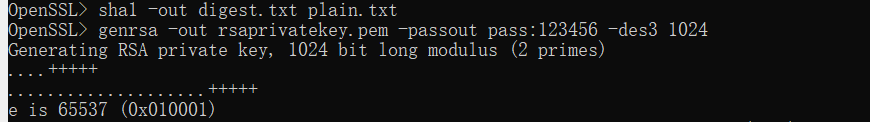(1)创建1024位的RSA私钥,写入文件rsaprivatekey.pem,同时将私钥用3DES加密,并设置密码。