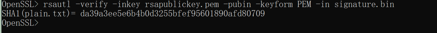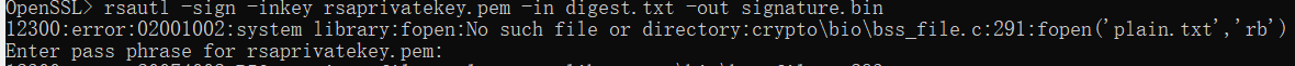 (3)利用上述私钥对摘要digest.txt进行签名,生成签名文档signature.bin