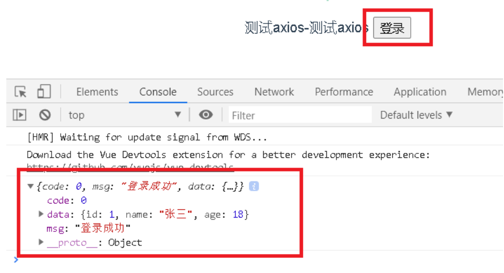 点击登录按钮,出发请求,成功登录,并返回django后端信息